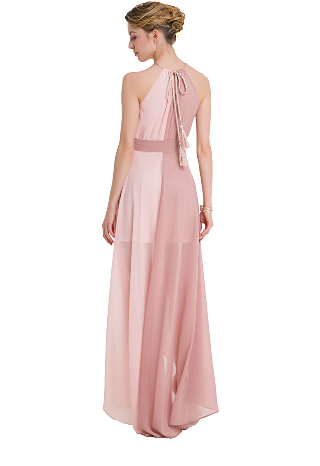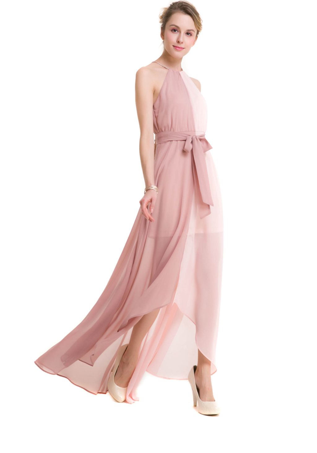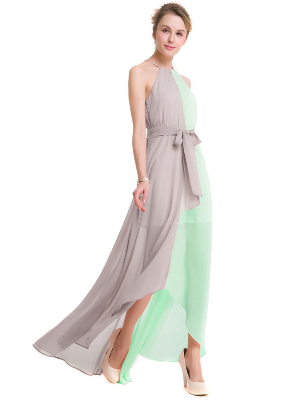 This light and flowly dress will elevate your look.It features halter neckline with drawstring closure, loose silhouette, sleeveless cut, patchwork design, asymmetric hemline and comes with lining and belt decoration. It made from highest quality of chiffon material. Perfect match for high heels & some accessories to look stunning in any occasions.