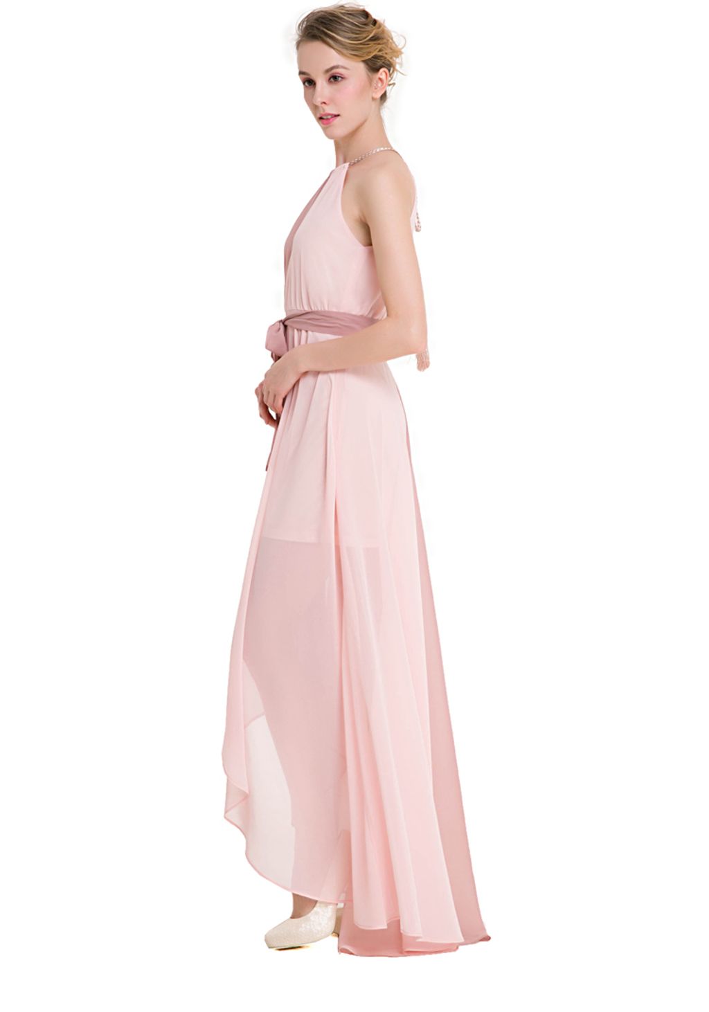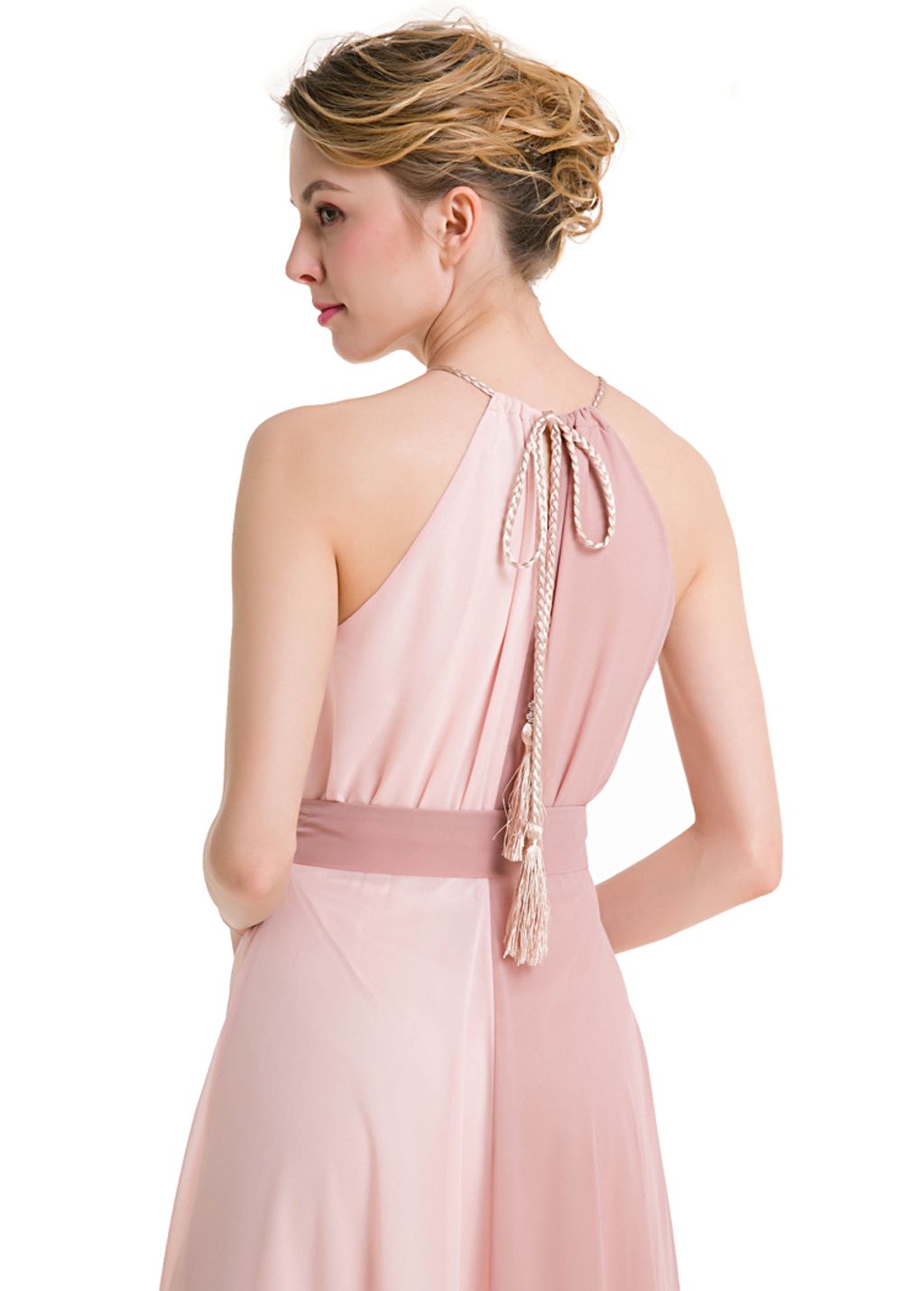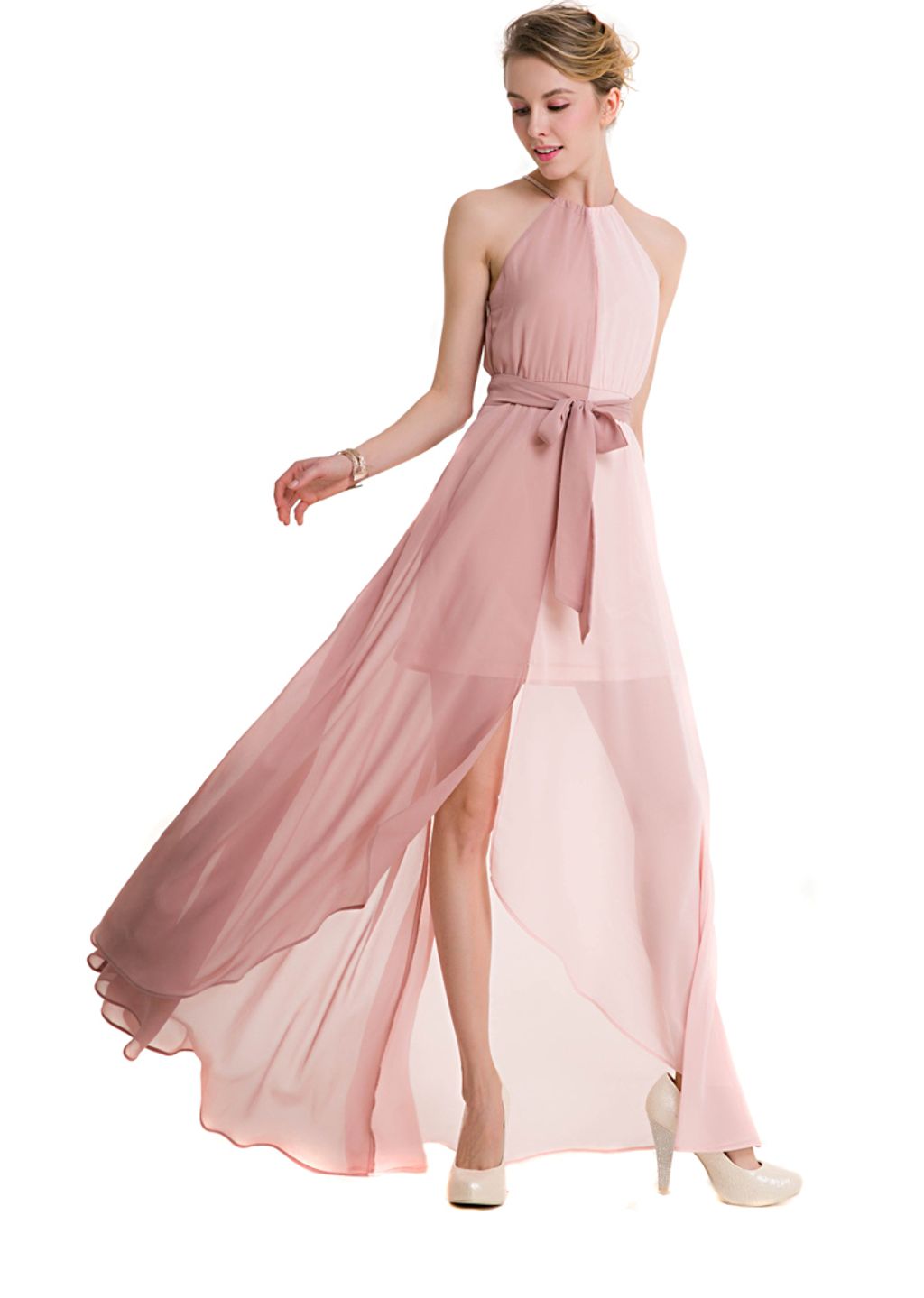 This light and flowly dress will elevate your look.It features halter neckline with drawstring closure, loose silhouette, sleeveless cut, patchwork design, asymmetric hemline and comes with lining and belt decoration. It made from highest quality of chiffon material. Perfect match for high heels & some accessories to look stunning in any occasions.